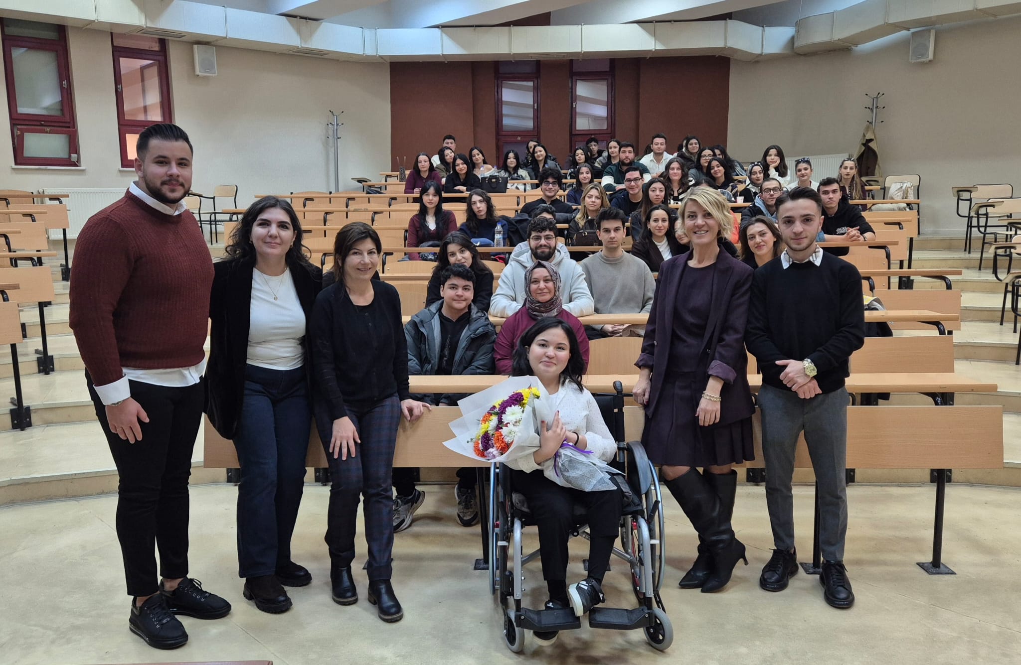 Fizyoterapi Programı öğretim elemanları tarafından 12/12/2025 tarihinde engelli bireylerin sosyal yaşama eşit katılımı konusunda farkındalık yaratmak ve toplumsal duyarlılığı arttırmak amacı ile tekerlekli sandalye kullanan spina bifida tanılı üniversitemiz öğrencisi ile üniversite yaşamı, erişilebilirlik, karşılaştığı fiziksel ve sosyal engeller, kampüs deneyimleri ve çözüm önerilerini konuştukları bir söyleşi gerçekleştirmişlerdir.
